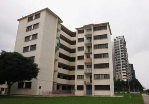 A view of the government housing complex which houses the address