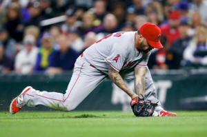 gave up a walk and a Mike Trout single before leaving in the eighth
