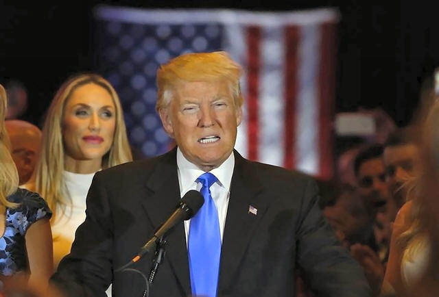 crowd outside, saying, "That is a stunning Trump girl, isn't it?"