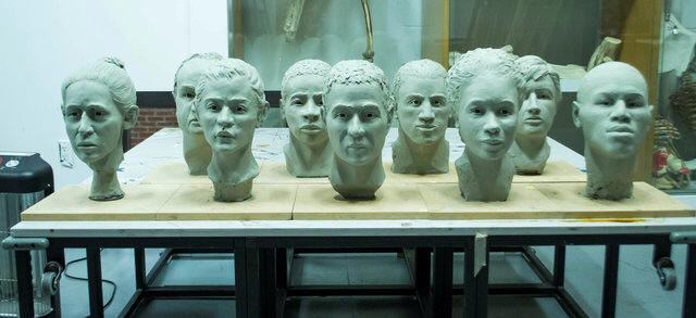 workshop. Students reconstruct the faces of about two dozen people