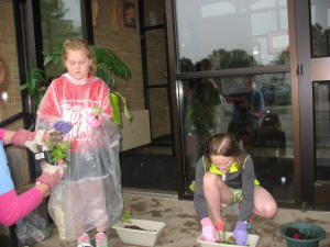 The girls from Northwest planted flowers and took them to the Hope Grows Neighborhood Center.