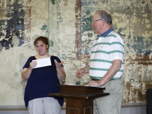 Committee, served as the host and presented the checks.
