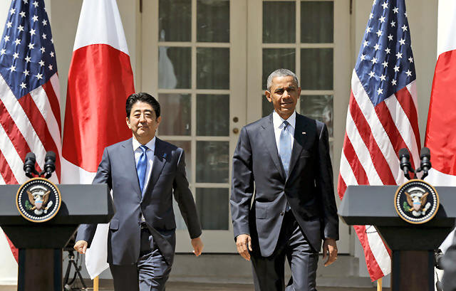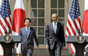 President Barack Obama and Japanese Prime Minister Shinzo Abe arrive for