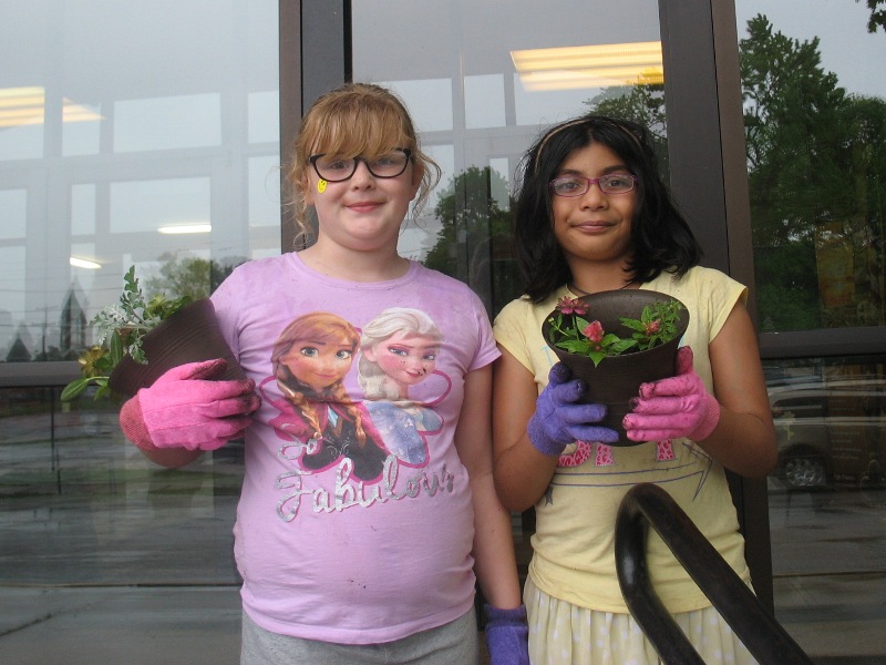 The girls from Northwest planted flowers and took them to the Hope Grows Neighborhood Center.