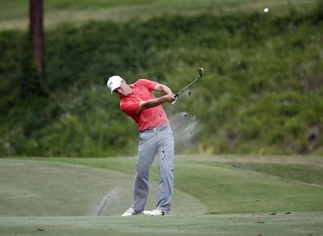Jordan Spieth plays his approach shot on the 6th hole during the second