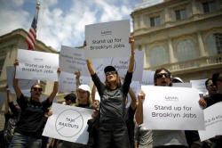 workers, attacked the arrangement as "cheap cover" for Airbnb.