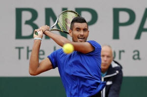 Nick Kyrgios returns the ball. Roland Garros - Nick Kyrgios of Australia
