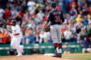 Indians pitcher Danny Salazar (31) reacts after Boston Red Sox