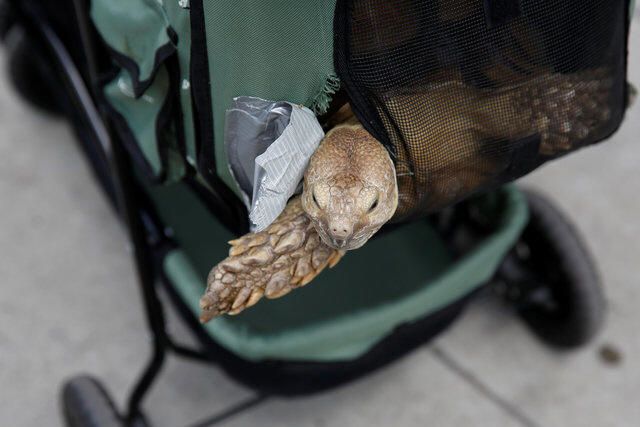 Tortoise in a baby stroller a