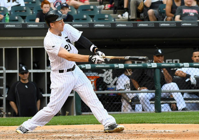 White Sox third baseman Todd Frazier (21) hits a single against