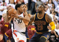 Raptors guard DeMar DeRozan (10) holds the ball away from