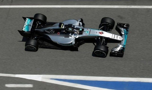 Mercedes F1 driver Nico Rosberg drives during the second free