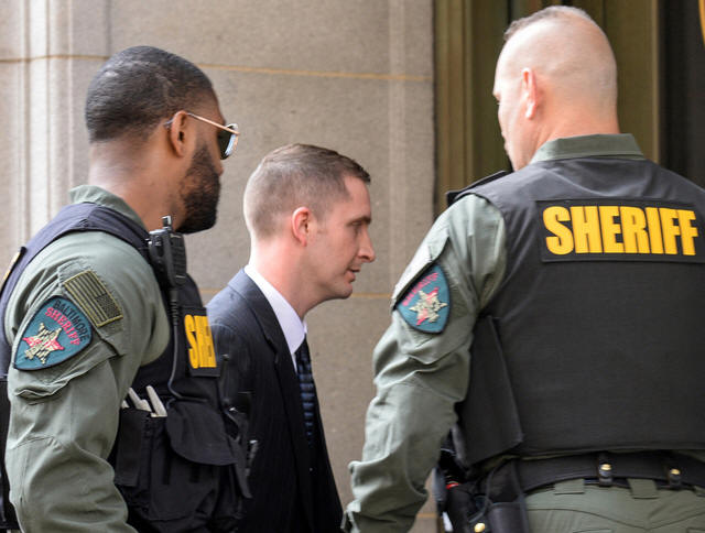 Baltimore police officer Edward Nero arrives for his trial in connection