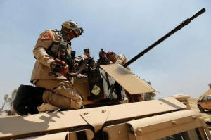 Members of the Iraqi security forces load a machine gun near Falluja,