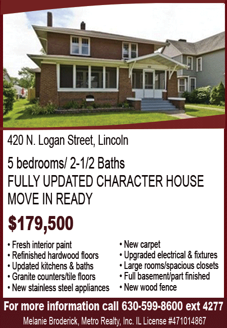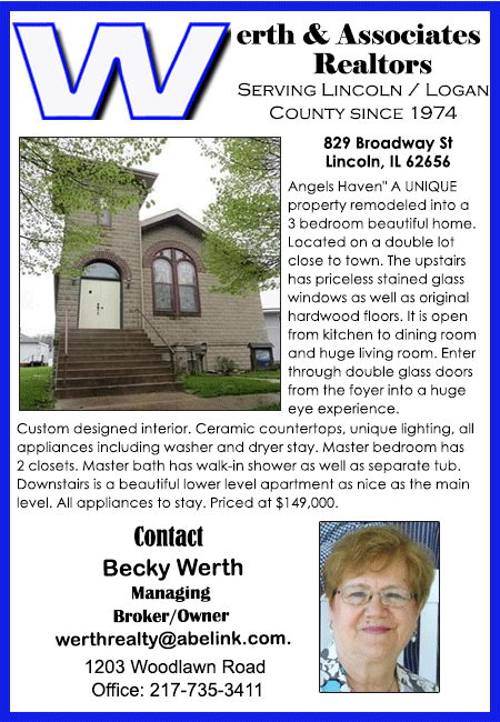 All real estate advertised in the Lincoln Daily News is subject to the Fair Housing Act for 1968 which makes it illegal to advertised "any preference, limitation, or discrimination based on race, color, religion, sex or national origin, or intention to make special preference, limitations, or discrimination."