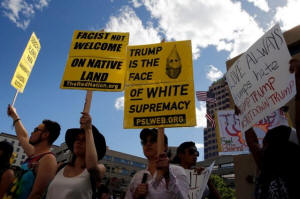 Protesters chanted anti-Trump slogans, held anti-Trump signs and