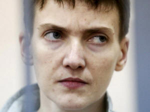 Ukrainian military pilot Nadezhda Savchenko looks out from a