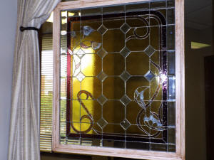 Some of Alexanders pieces lean to the abstract while others reflect the days gone by when stained glass adorned the front doors of many Victorian homes.