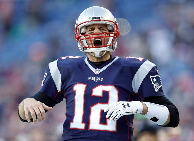 Patriots quarterback Tom Brady (12) reacts before the game against