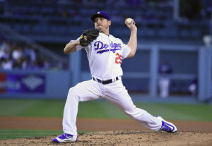 Dodgers starting pitcher Scott Kazmir (29) delivers a pitch against