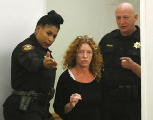 Deputies direct Tonya Couch (C) to the defense table before her bond