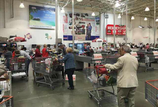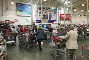 People are seen inside shopping at a Costco Wholesale warehouse club