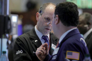 Traders work on the floor of the New York Stock Exchange (NYSE) in