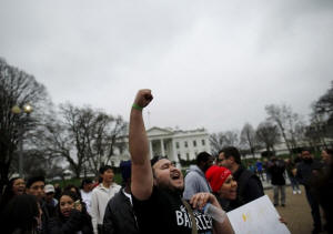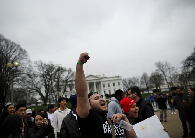 Anti-deportation demonstrators protest outside of the White House in