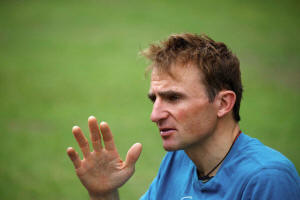 Ueli Steck, a mountaineer from Switzerland, speaks to the media