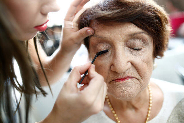 make-up done before the start of the annual Holocaust survivors'