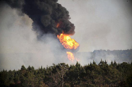 shoot into the sky from a gas line explosion in western