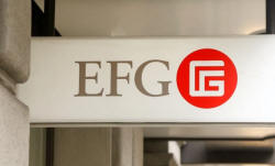 The logo of Swiss bank EFG International is seen at its headquarters