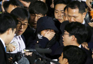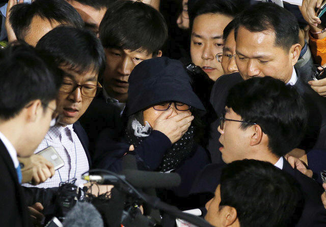 Choi Soon-sil (C), who is involved in a political scandal, reacts as