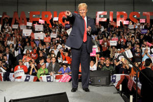 Donald Trump appears at a campaign rally in Warren, Michigan.