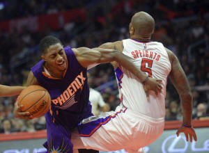 Suns guard Brandon Knight (11) collides with Los Angeles Clippers