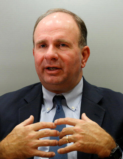 speaks during an interview with Reuters at the company's Tokyo
