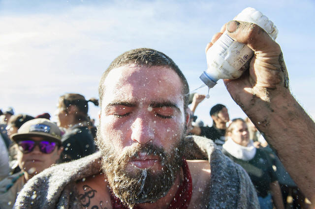 during a protest against the building of a pipeline on the Standing