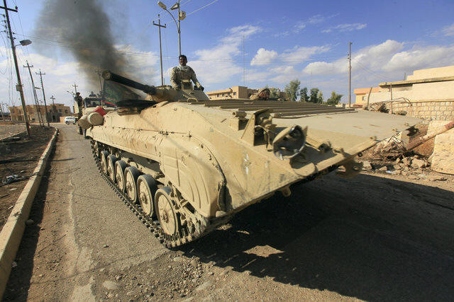 Military vehicles of Iraqi army take part in an operation against