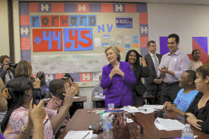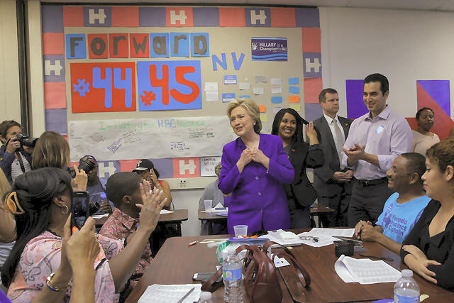 Hillary Clinton visits a campaign field office in North Las Vegas,