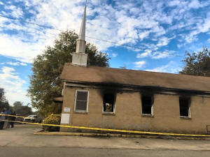 Hopewell Baptist Church is damaged by fire and graffiti in