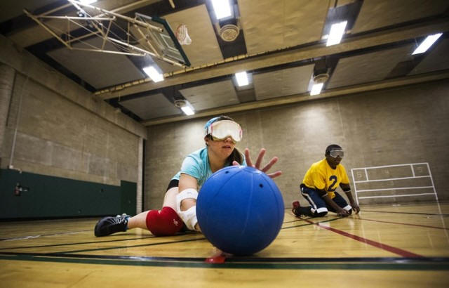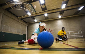 Children take part in goal ball at Camp Abilities in Brockport, New