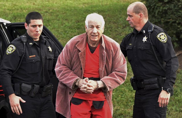 Convicted child molester Jerry Sandusky (C), a former assistant