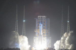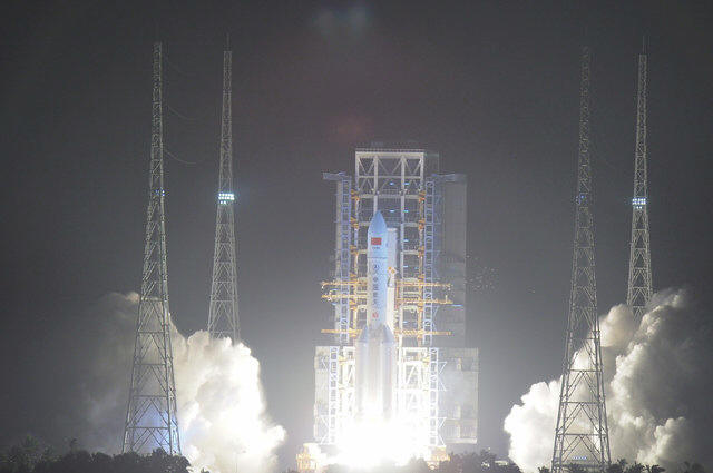 A Long March 5 carrier rocket is launched from Wenchang Satellite