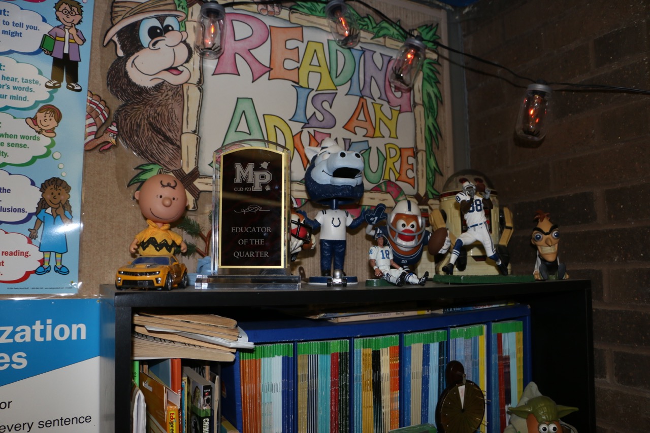 In the corner of his classroom is a bookcase and on the top shelf sits various Colts collectibles. Meanwhile, behind his desk hangs a Colts poster on the wall. The guy also adores, as mentioned before but worth repeating, the Purdue Boilermakers and again, not meaning to rub this in but the guy cheers for the Chicago Cubs, who are still playing baseball in late October. Good guy all around.