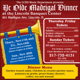 [November 06, 2016]  LINCOLN - The Lincoln Community High School Music Department will host “The Madrigal Feast of the Lords and Ladies” on November 17, 18 and 20 at the Lincoln Banquet Center.