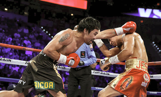 Manny Pacquiao (L) of the Philippines punches at WBO welterweight