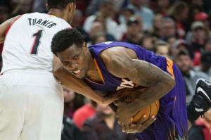 Phoenix Suns guard Eric Bledsoe (2) is fouled by Portland Trail