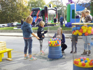 Another set of tables was set up showing off an array of new woven products being offered at Abe’s Carmelcorn Shoppe. Bounce houses were set up for the kids as well as some life-sized kid’s games similar to Kerplunk and Jenga.