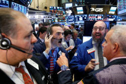 Traders work on the floor of the New York Stock Exchange (NYSE) the