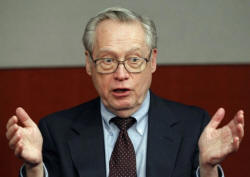Dan Fuss gestures as he speaks at the Reuters Investment Outlook